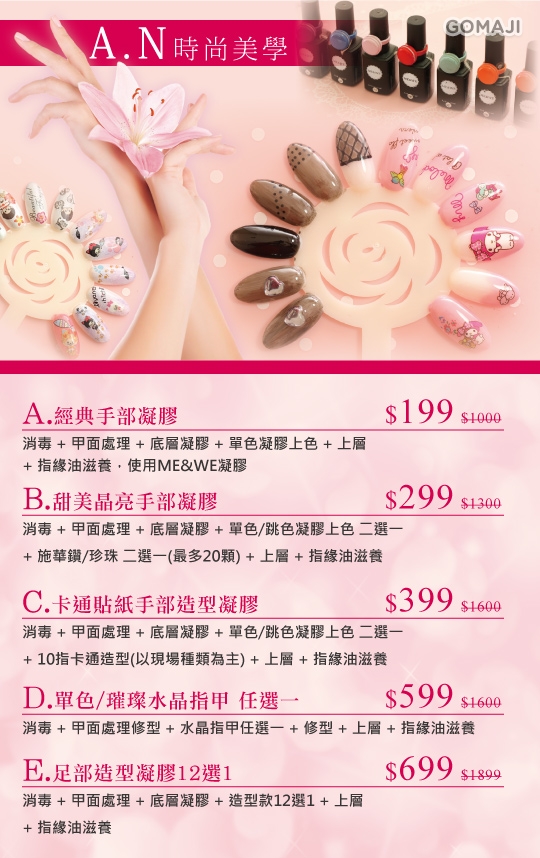 小資女孩輕鬆變美!現在只要199元起,就能體驗【A.N時尚美學】專業凝膠美甲課程,色彩飽滿持久,讓指尖隨時隨地閃耀時尚光芒!